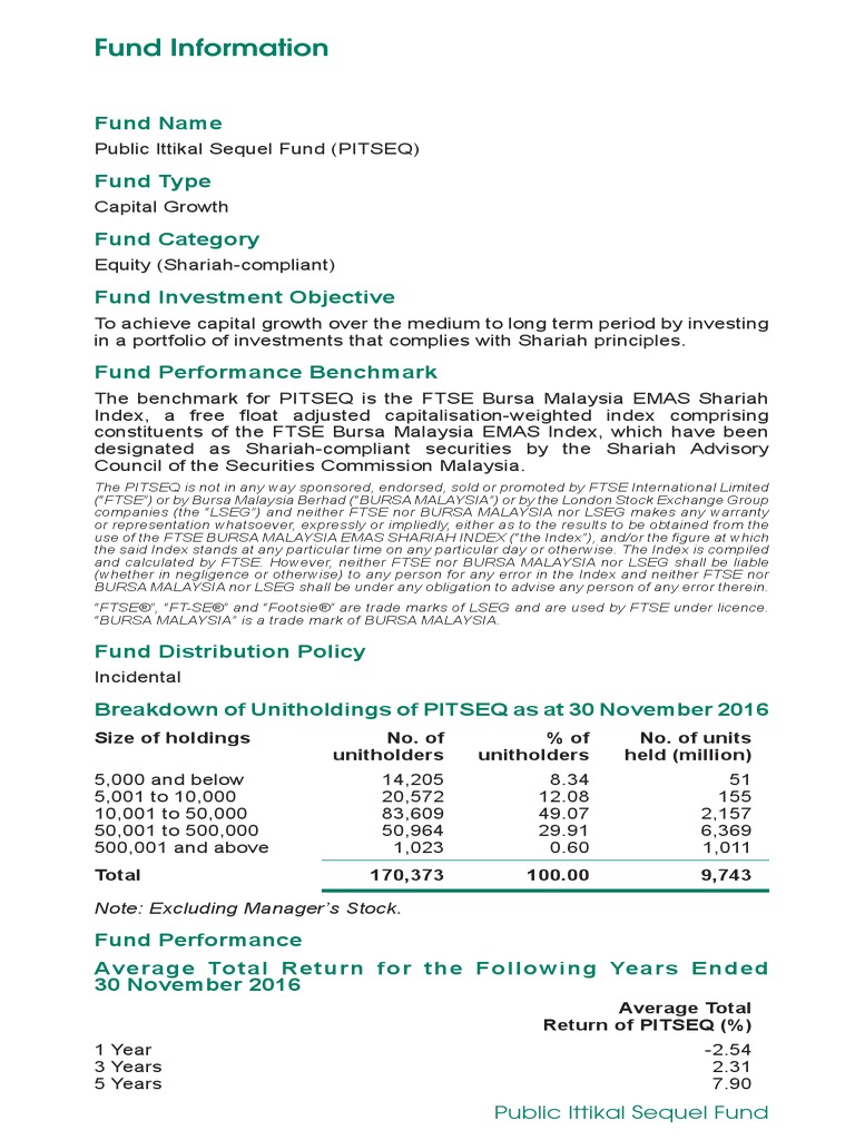Public Ittikal Sequel Fund PITSEQ complimentary Takaful coverage is offered to all the unitholders of PITSEQ who maintain a minimum investment of RM5000 Net Asset Value NAV at any point of time. Public Ittikal Fund is an open-end unit trust established in Malaysia. Public Mutaal is lauching a new Islamic fund Public Ittikal Sequel Fund PITSEQ on 11 October 2011.